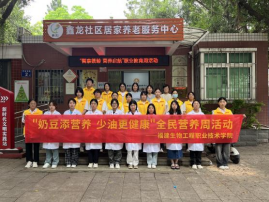5月12日至20日,我校开展全民营养周暨5·20学生营养日营养健康主题宣传活动,由健康食品系、健康管理系、美育教育发展中心牵头,在国德康养中心、金山街道鑫龙社区开展“智享银龄 营养启航”全民营养周系列活动。