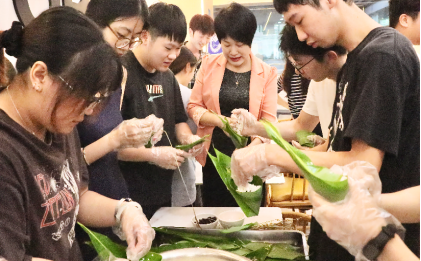 6月10日下午,药学系中华优秀传统文化传承社在“一站式”学生社区举办“浓情端午 ‘粽’享欢乐”端午实践活动。校长张俐、学生工作部部长蔡立峰与留校同学一起参加活动,共度佳节。