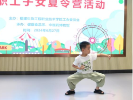 6月27日,校工会联合健康食品系、中医药博物馆举办“童心璀璨筑梦成长,与‘食’俱进乐游生工”教职工子女夏令营活动,先后安排了食品营养讲座、茶百戏、青团制作、参观饮料生产线、观察微生物、参观中医药博物馆、才艺表演、趣味体育活动等内容。活动为期1天,共有58名教职工子女参加。